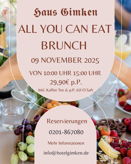 Am Sonntag, den 16. Juni 2024, lädt das Hotel Gimken in Essen zu einem exklusiven Sonntagsbrunch ein. Ab 10:00 Uhr erwartet die Gäste ein reichhaltiges Buffet mit einer Vielzahl von kulinarischen Köstlichkeiten, die keine Wünsche offenlassen. Ob herzhaft oder süß, ob warm oder kalt – hier ist für jeden Geschmack etwas dabei. Ein besonderes Highlight […]
